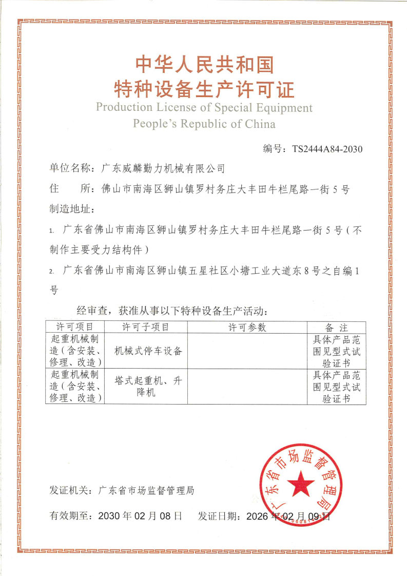 ● 威麟勤力机械有限公司位于广东省,是一家专业从事货物起重机械的制造商。