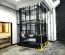机械机构:机械机构分四部分,基架、轿厢平台、防护网和液压执行元件(油缸)。